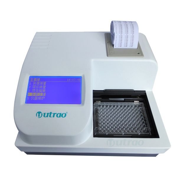 仪器特点 高亮度液晶显示器,触摸屏操作 操作软件方便、快捷、智能化(中英文选配)内置超强的数据分析系统和多种计算公式 仪器稳定性好、准确度高、重复性好、寿命长 应用 领域:医院、疾控中心、血站、计生站、妇幼保健院、体检中心等机构 检测项目:血液学、免疫学、细胞生物学、微生物学等;如肝脏病、肾脏病、心脏病、糖尿病、脑血管病、呼吸病、传染病、产科病、 新生儿唐氏综合征筛查、肿瘤筛查、遗传病以及外科手术、严重创伤、药物治疗等 仪器技术参数 光普范围:400~800nm 滤光片:标准4个滤光片(405、450、492、630nm),最多可装载8个滤光片 线性系数:r≥0.999; 准确度:ΔA≤±0.01(0≤A<1.0);ΔA≤2.5%(A≥1.0); 重复性:≤0.2%(0≤A≤1.5Abs);≤1.0%(A﹥1.5Abs); 稳定性:±0.003 Abs; 八通道差异:≤0.02; 灵敏度:±0.003 Abs 吸光度范围:0.000- 4.000 Abs 分辨率:0.001 Abs 电压:AC 220V, 50Hz/60Hz 振板:有三种(中、高、低),震荡速度和时间0-999秒可调 可适用的微孔板型:96 ,48孔板”平”,”U”,”V” 底 工作环境:电源AC220V,50HZ;工作温度,10℃-30℃,工作湿度,≤85% 软件:可根据客户需求选择开放或不开放 接口:1个RS232 8通道光纤测量系统,双波长测试自动调零;单波长:3秒/96孔,双波长:6秒/96孔。 240×128点阵液晶显示器(触摸屏),自带微电脑系统,无需外接电脑;操作十分简单,每步均有中文提示。 96孔可视化布板,一次最多可检测96个样品,全自动进样。 大容量数据存储200个分析程序,测试结果1000盘测试结果,断电数据自动保护; 内置57mm 热敏打印机 仪器内置吸光度法、系数浓度法、标准浓度法、多点标准法、标准直线法、+/-单限检测、-/O/+双线检测、等级检测、列减法等计算方法。 |